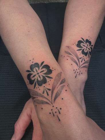 Hi! I’m from Savannah, Georgia and have been tattooing for three years! I love tattooing ornamental pieces, flora and fauna, along with gothic imagery and anything celestial. In my free time I’m either reading, annoying my cats, or playing Stardew Valley.